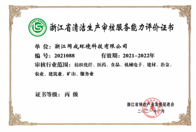 浙江省清潔生產(chǎn)評(píng)審核服務(wù)能力評(píng)價(jià)證書