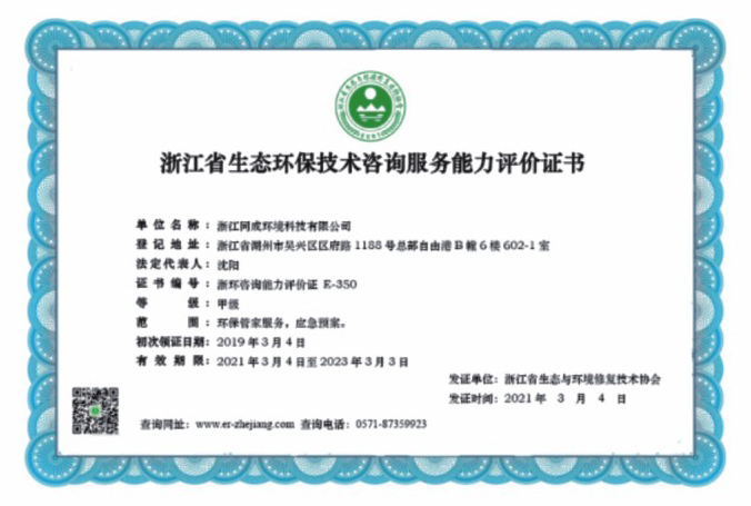 浙江省生態(tài)環(huán)保技術(shù)咨詢服務(wù)能力評(píng)價(jià)證書