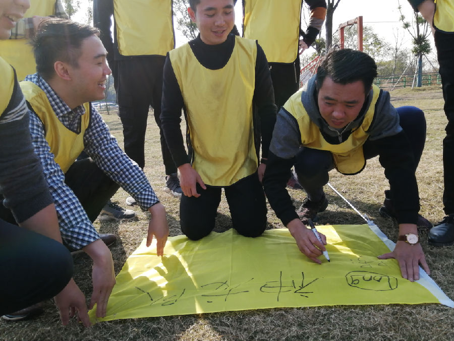 4、下午2點教練安排的熱身小游戲再一次激發(fā)了我們參與的熱情。接著我們挑戰(zhàn)了第二個活動項目--《沙場點兵》,此項目主要培養(yǎng)建立小組成員的相互信任;促進溝通與交流;體會信息傳達準確與否直接影響團隊計劃的實施;要有好的團隊策劃方案,更要有好的執(zhí)行力;在激烈競爭中獲勝,很大程度取決于團隊領導的組織協(xié)調(diào)能力。
